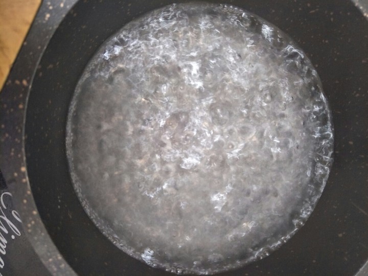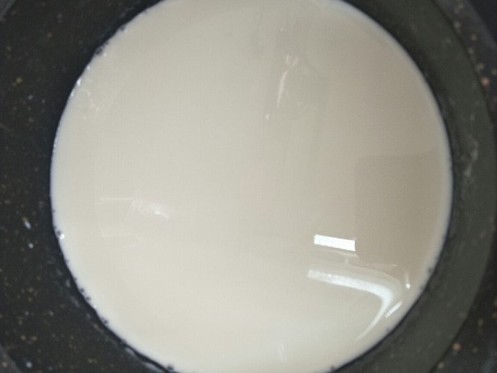 5、在这一刻钟之内,可以往干净的锅里加入适量的牛奶,然后再放入适量的冰糖。将其充分煮开了之后,再往里面加入适量的白凉粉,再将其充分搅拌均匀。