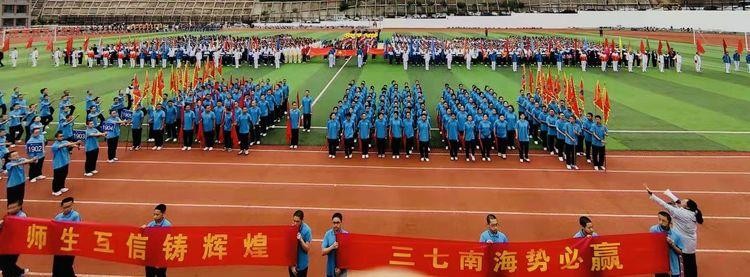 战鼓隆隆,战旗飘扬,初三战队的小战士们在一片红色的海洋中自信入场。他们将带着师生互信铸辉煌,三七南海势必赢的信念顽强拼搏,角逐赛场!