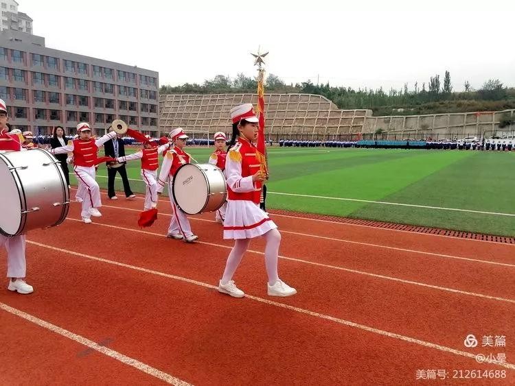 旌旗招展,花团簇簇,伴着进行曲,各班队伍依次入场,他们排着整齐的队伍,大踏步向主席台走来。