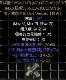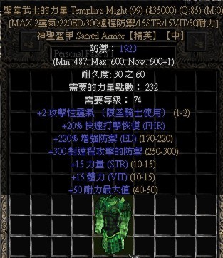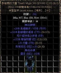 很多暗黑老玩家都未必见过这件装备,极低的爆率,不错的收藏品。