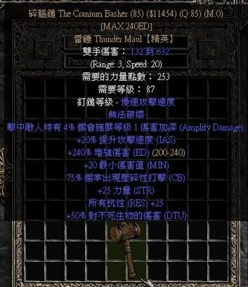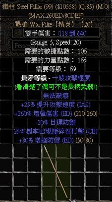 CB是暗黑2中最高,打BOSS很好用,但提速少 基础速度慢,更多时候只能算是个非常不错的收藏品。