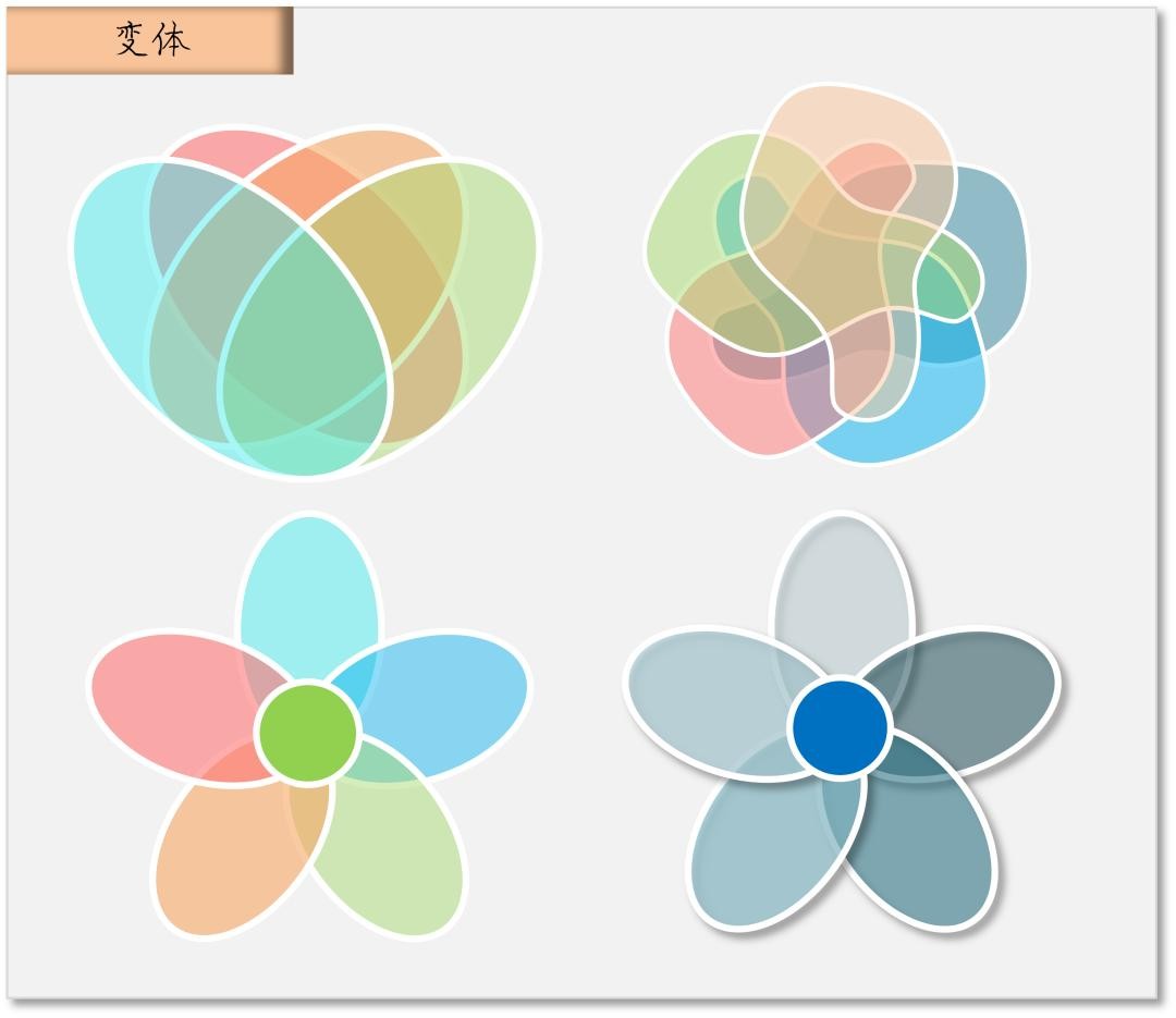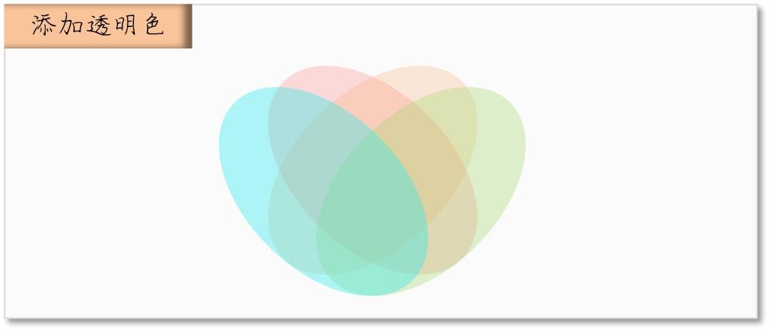 椭圆没有固定的尺寸,可以根据实际情况自由调整,或许可以试试黄金比例0.618。四个椭圆都要加透明色才能显示出交叉部分。