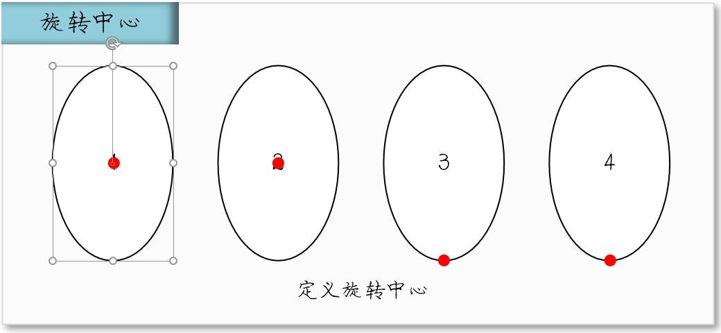 定义旋转中心,1号椭圆和2号椭圆的旋转中心不变,主要改变3号和4号椭圆的旋转中心,根据原图理解,它们的旋转中心应该下移。鼠标放置在椭圆的旋转按钮上,中心会出现一个圆点,拖动圆点便可以调整旋转中心,我们将中心直接拖拽至椭圆的下顶点。