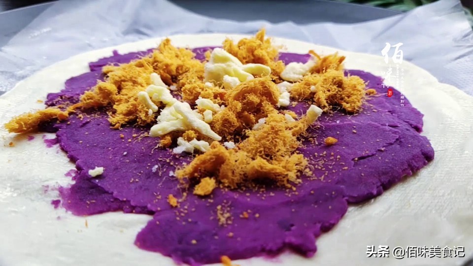 紫薯的营养丰富,口感粉粉甜甜的,外观看起来也是很舒服,又有食欲。不仅可以蒸着吃,还可以煮着吃;现在把它搭配手抓饼,马苏里拉芝士碎,肉松包裹在一起,再中火煎至表皮微微金黄酥脆,这样的早餐简直,好吃到渣都不留!而且在这寒冷的冬天,这样的早餐还能增加热量和满满的饱足感。紫薯属于杂粮类,其中的膳食纤维,即使不吃饭,吃上两三个都能增加体力大半天都不会有饥饿感,还可以增加肠道的蠕动。有利于减脂瘦身,何乐而不为呢?如果你也喜欢这样吃,看完赶快收藏分享给家人朋友吧!