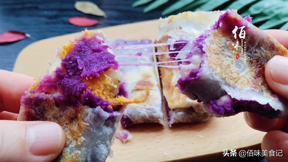 6、紫薯手抓饼,这样做简单又好吃,轻轻一扯,还可以拉丝,好吃到吮手指。