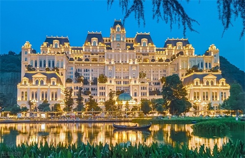 再配合以夜晚繁星四起,灯火辉煌的明亮灯光,这座圣洁的白色城堡被映衬在水中,光影晃动,光怪陆离,如梦似幻。