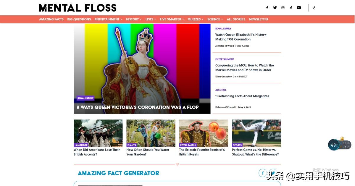 Mental Floss是一个奇闻异事和有趣知识的博客,提供了各种令人惊奇和有趣的主题,如历史、科学、文化等。