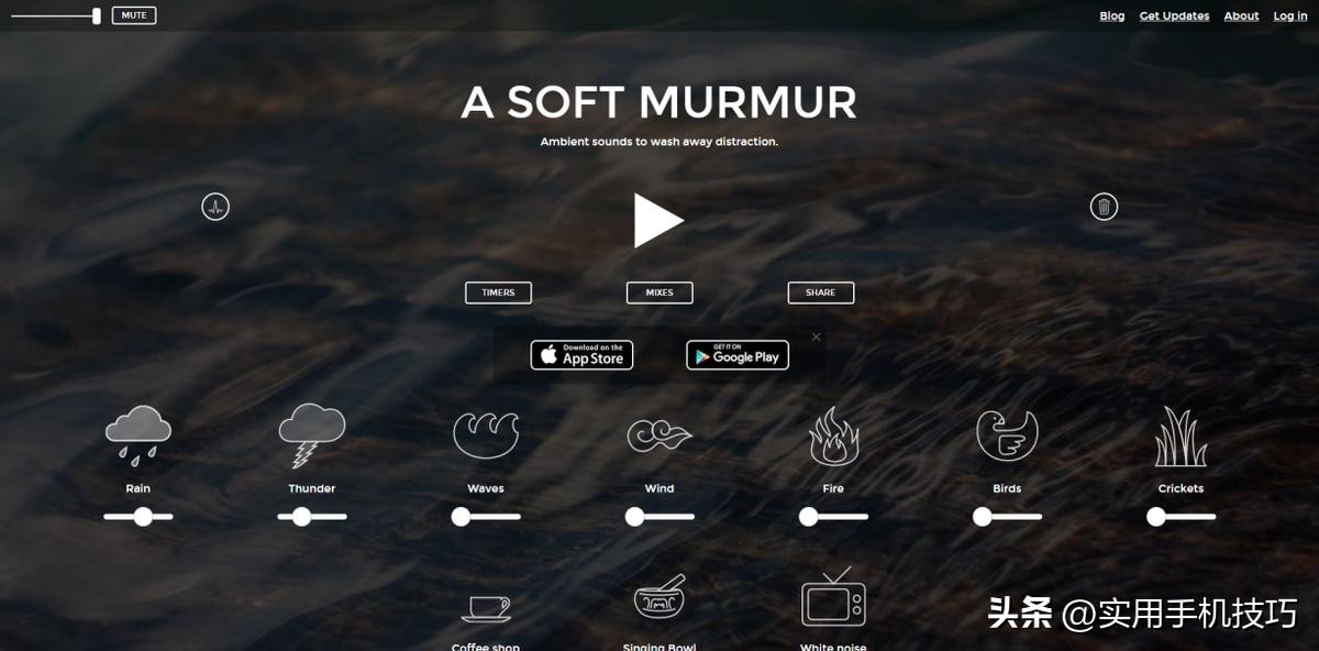 A Soft Murmur 是一个在线白噪声生成器,提供了各种环境音效,可以根据用户的需求和喜好自定义各种声音效果,如雨声、咖啡店背景音乐、海浪声等,帮助放松身心和提高专注力。