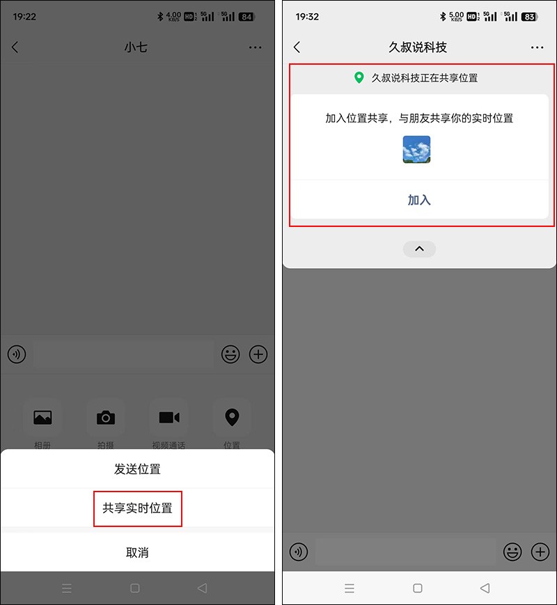 【共享实时位置】显示的是你目前所在的具体位置,它和【发送位置】不同,【发送位置】可以通过搜索地点来输入其他地点,甚至可以输入别的省份别的城市的地点,然后发送给你,但是【共享实时位置】只能共享你目前所在的定位。所以当某个人告诉你TA在哪里,而你不信时,可以让对方打开共享实时位置,你进去一看就知道对方有没有骗你了。