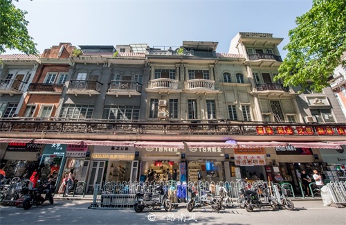 想感受广州十三行的风华,个人认为文化公园背面的十三行路是个不错的地方,这里保留了大量清末民初特色的欧陆式建筑,大部分联排洋楼三到四层,二三楼建有阳台,外墙颜色多样,但都是浅色调,相对耐看。