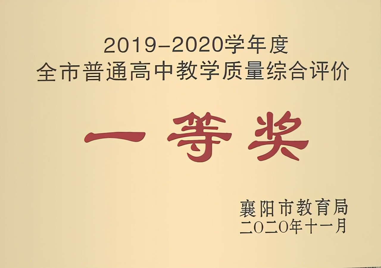 学校先后荣获“湖北省文明单位”、“湖北省安全文明校园”、“襄阳市最佳文明单位”、“襄阳市群众最满意学校”、全市普通高中教学质量综合评价一等奖(2010-2018)、高考高分段理科一等奖、高考高分段文科一等奖等荣誉称号,连续多年被市教育局评为“全市普通高中教学质量综合评价一等奖”,被华中科技大学、武汉大学、武汉理工大学等“双一流”大学授予“优质生源基地”称号。