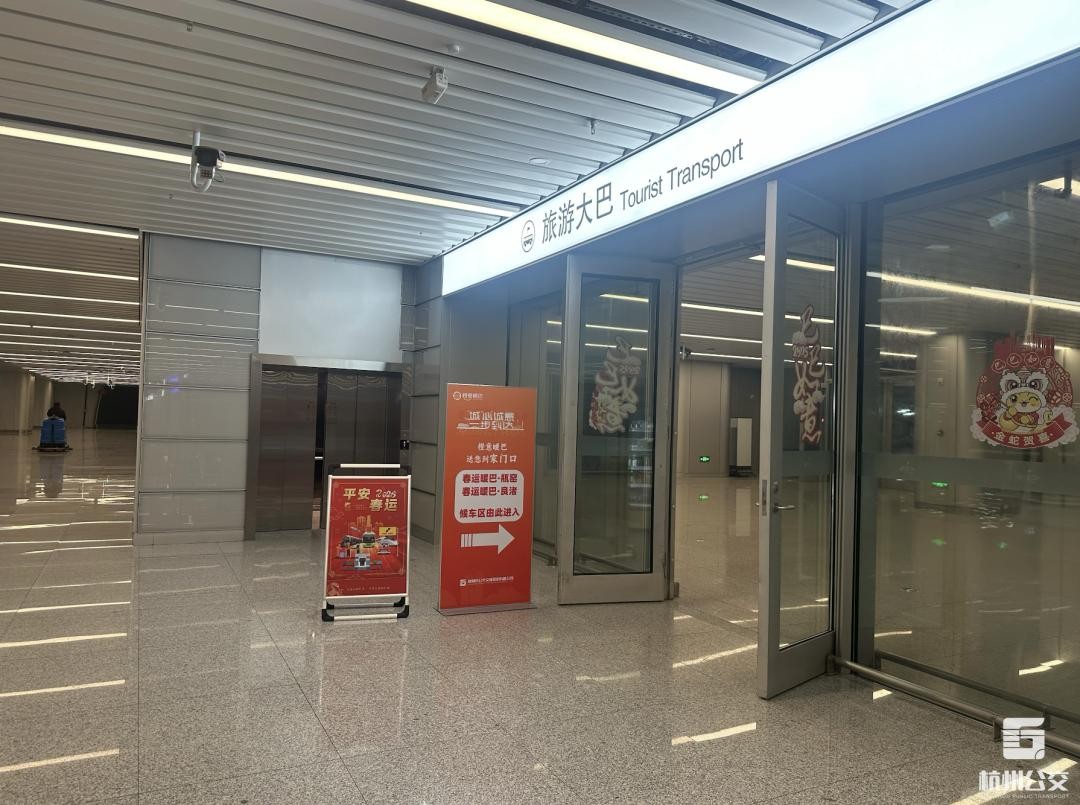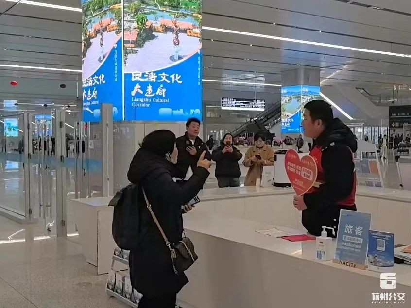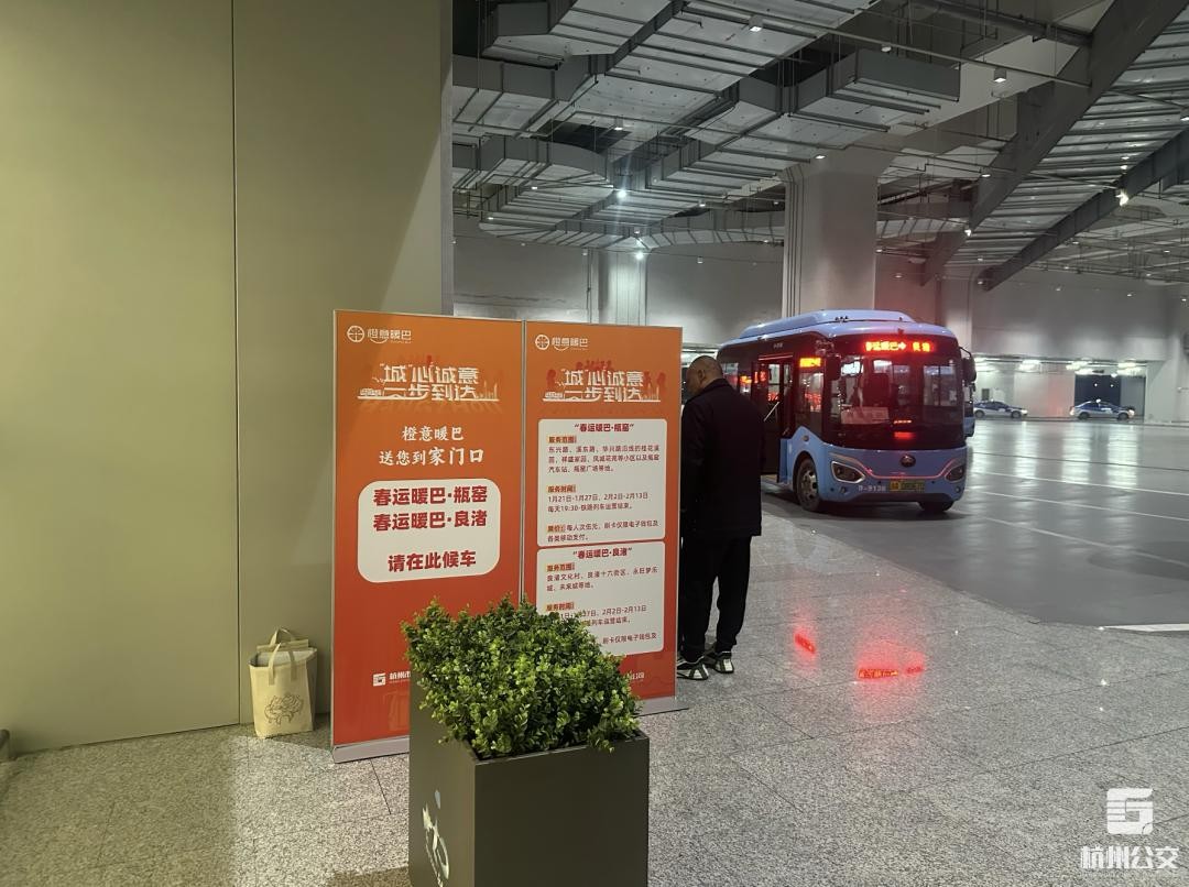 此外,杭州公交还在P5停车场候车区设置了醒目的标识牌,并在到达层的服务台放置了“春运暖巴”导乘指南手册,方便市民乘客获取相关信息。