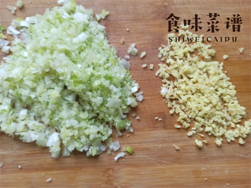 4、 蒜末,姜末切好,大葱可以适当的多来一些,如果喜欢吃辣椒的小伙伴,可以适当切点小米辣,增加底味。
