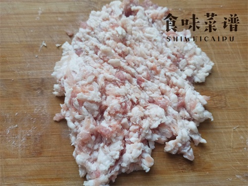 2、五花肉剁成碎末,不建议在肉摊上处理, 它那个绞肉机老有碎肉,弄的一股子怪味,尽量剁的碎一些,装入碗中,加适量胡椒粉,料酒,玉米淀粉,一点点食用油抓拌均匀。