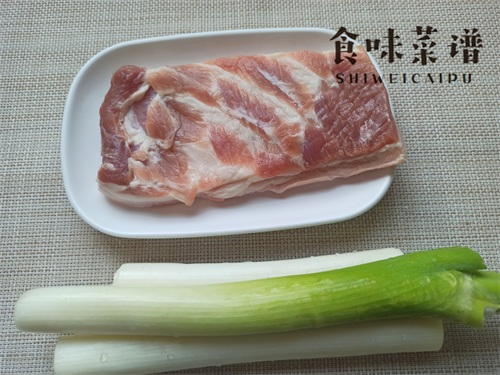 1、准备五花肉一块,大葱一根,香菇三朵,这些是香菇酱的主要食材,缺一不可。
