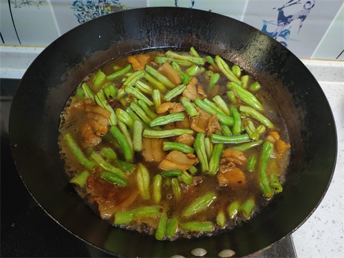 2、做豆角焖面容易糊锅的原因,很多时候是因为没有观察锅底的水量,新手在焖面时可以尽量多加一点水,比较稳妥,最后汤汁还比较多的话可以舀出来一些。