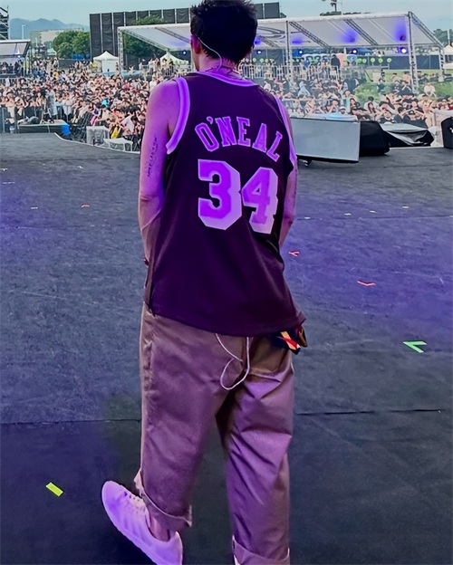 5月17日,碳中和音乐节在大佳河滨公园如期举办,众多说唱歌手登场,陈冠希被安排为压轴“神秘嘉宾”。一身街头风穿搭——卡其休闲裤、褐色背心、绿短袖外套,他用老派MC方式向观众问好:“大家还记得我吗?”台上,他流利演绎多首国语嘻哈曲,节奏精准,手舞足蹈,越唱越兴奋,甚至当场脱掉外套,只剩下印有奥尼尔“34号”篮球背心,向青春致敬。台下粉丝挥舞荧光棒跟拍拍点节,现场氛围如同当年Hong Kong Underground派对再现。