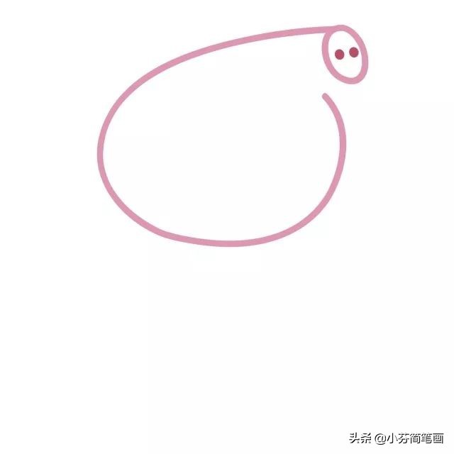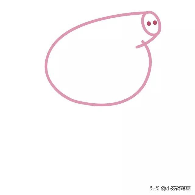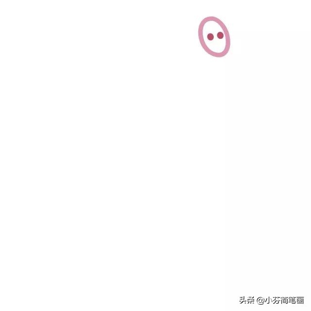 第一步:画猪鼻,先画一个圆圈,然后在里面点两点。