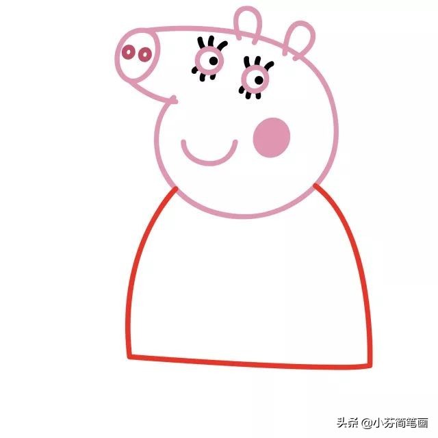 第六步:画猪妈妈的身子,猪妈妈穿的是裙子。