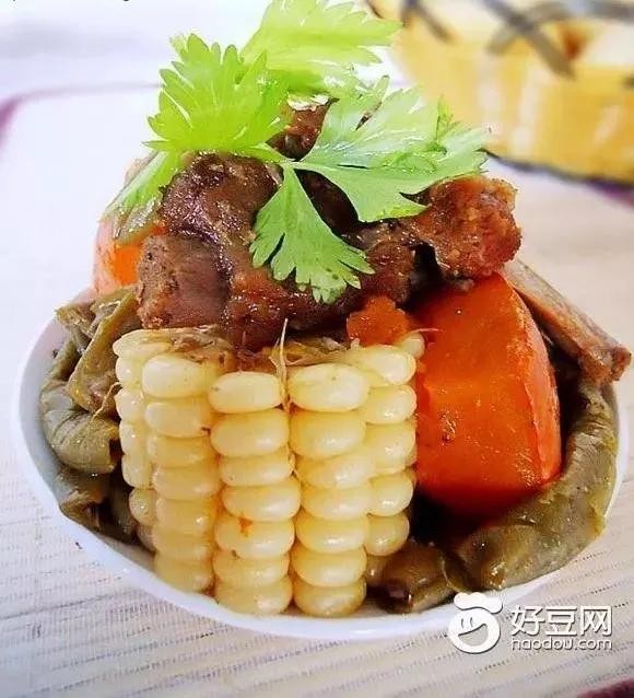 东北乱炖又叫东北大杂烩,也是东北的传统菜之一,有排骨、玉米、豆角、倭瓜,一同炖制而成,营养丰富,制作方便,味道更是互相浸入,相得益彰!