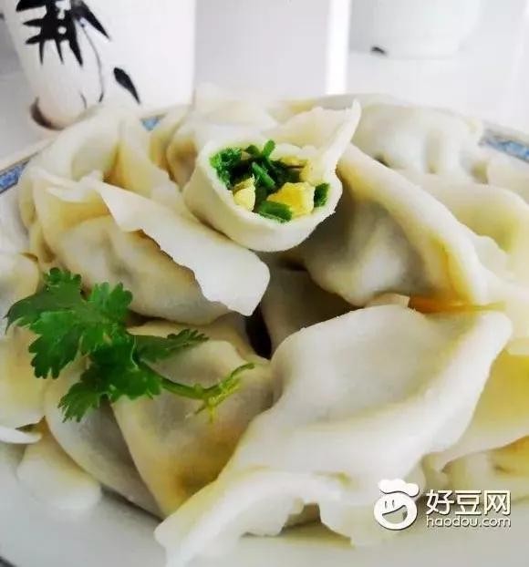 这是韭菜鸡蛋饺子,是最家常的一种饺子。