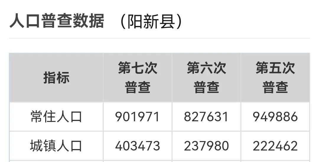 根据第七次人口普查数据,截至2020年11月1日零时,阳新县常住人口为901971人。