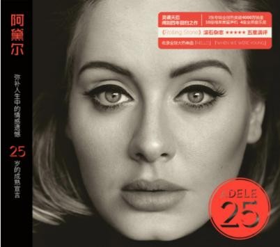 阿黛尔回归家庭,事业上重整旗鼓,在2015年发行专辑《25》,一首《Hello》再次让全球的歌迷接听了她的电话,并直接顶着莓莓(泰勒·斯威夫特)的热度24小时内播放量达到2700万。《25》是一张为家人而做的专辑,一张是和过去和解的专辑,阿黛尔展现了她从女孩到女人的成熟蜕变。凭借这张专辑,阿黛尔第三张登上美国公告牌专辑榜冠军,并以首周300万张的销量打破美国首周最高唱片销售纪录 ,拿下20多个国家的专辑排行榜冠军。这张专辑还被《滚石》杂志评为年度“50大最佳专辑”之一。并且再次获得第59届格莱美年度最佳专辑获奖、最佳流行专辑等奖项。2015年底,《25》凭借1740万张的唱片纪录而成为全球销量最高的专辑。