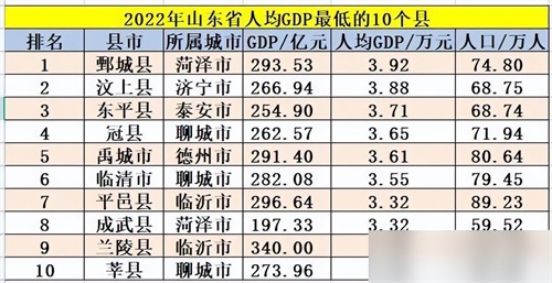 山东省落后的10个县!聊城3个县上榜,菏泽2个县入围,莘县垫底