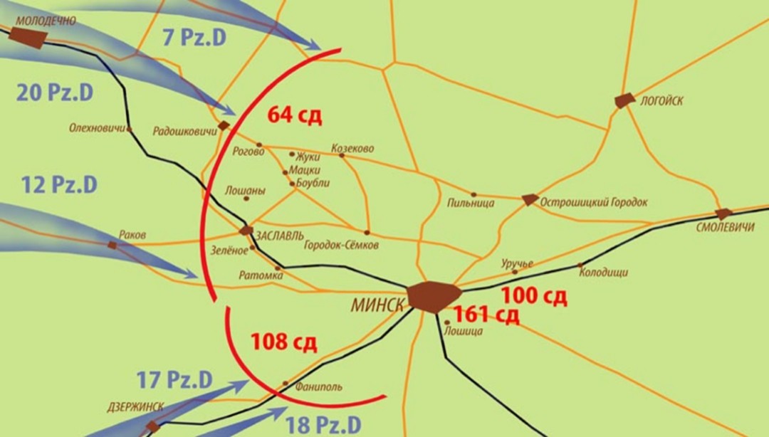 之后巴甫洛夫在22号上午执行第三号指令发动的第二次反击也惨招失败,西方面军突出部地带变成了一个巨大的包围圈,巴甫洛夫只能命令部队尽可能突围,并试图在早就被他拆的千疮百孔的明斯克防线阻挡德军并发动反击。