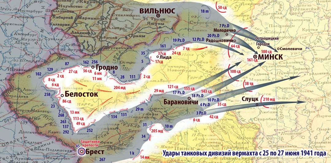 果然漏洞百出的防线和过于稀疏的兵力导致德军在几个小时后就突破了布列斯特和哥罗德诺地区,然后长驱直入。尽管巴甫洛夫比苏军总参谋部行动要早的多,一早就派遣了机械化军区拦截德军,但是由于机械化军兵力过于分散,切大量装备处于维护状态无法投入作战,最终只得分批次投入战斗,结果并没有挡住德军的进攻,反而自己落入了重围。