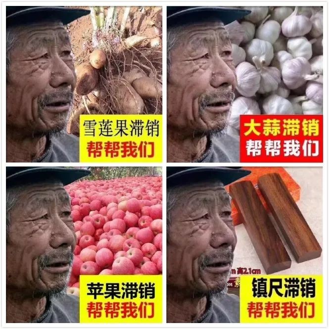 但是看多了却发现,不同的滞销商品上用来打“悲情牌”的老大爷,都是同一个人。