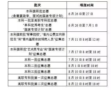 2019年高考志愿填报时间安排、