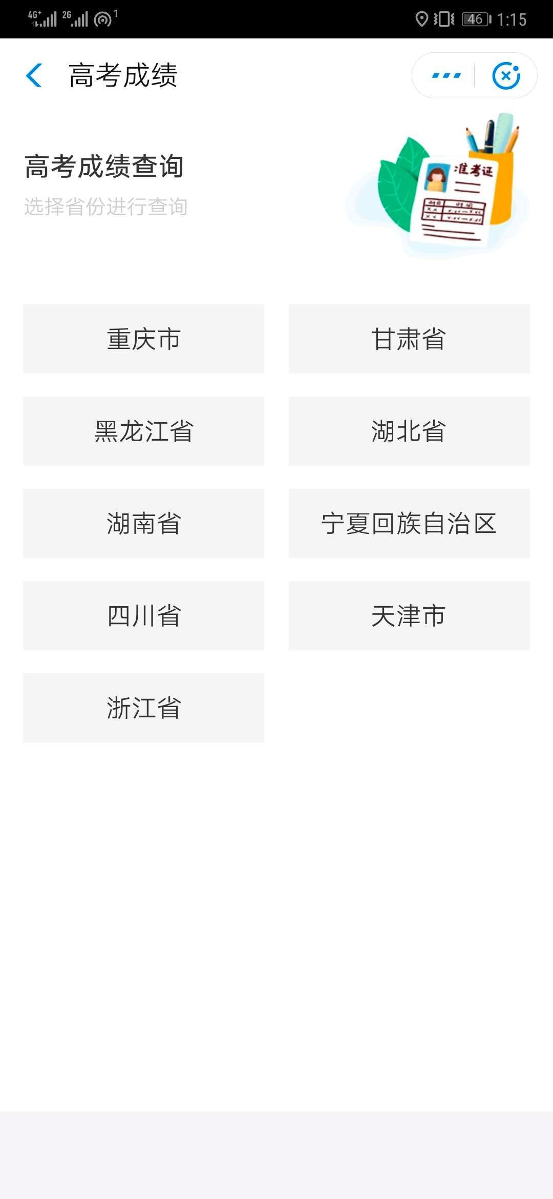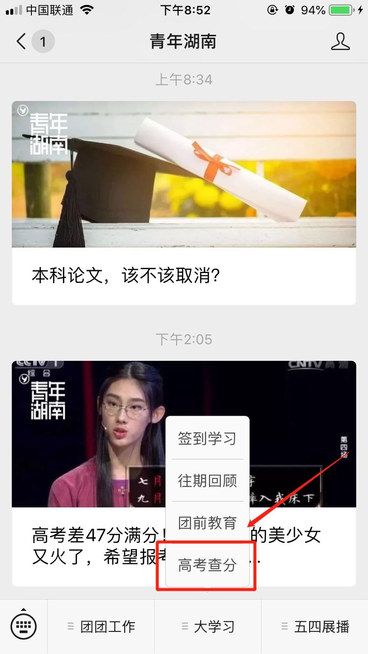 菜单“大学习”——“高考查分”