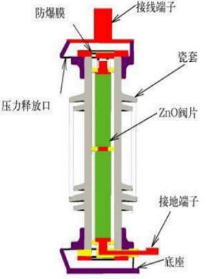 氧化锌避雷器的主要元件是氧化锌阀片料,加入少量金属氧化物,在高温下烧氧化锌避雷器的内部元件由中间有孔的根有机绝缘棒,两端用螺栓紧固而成各有一个压紧弹簧压紧。瓷套两端法兰炸和损坏其他设备。
