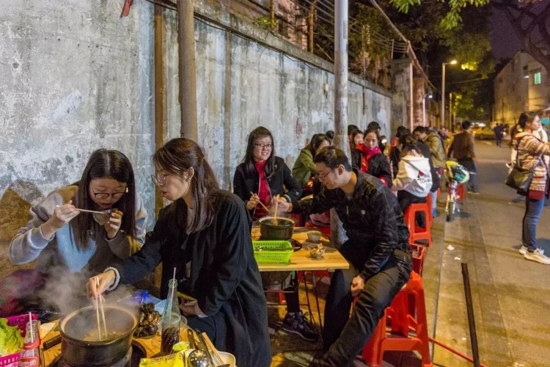 自从2003年城市建设,撤走了陆居路特有的夜生活——灯光夜市,这里却又以宵夜街将这份热闹延续。过去的夜市只是附近居民茶余饭后的消遣地,如今的宵夜街却变成全广州人的深夜聚集地。