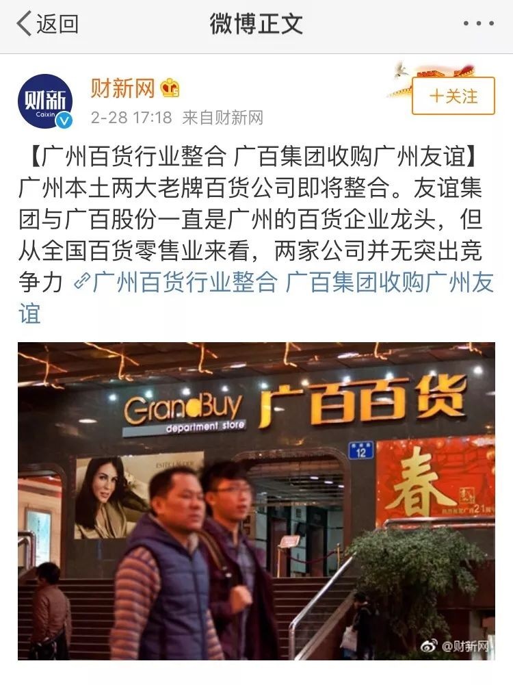 广百集团已收购广州友谊100%股权