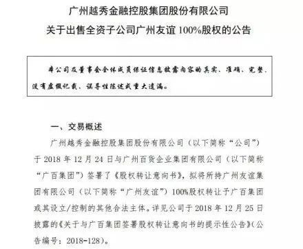 “关于出售全资子公司广州友谊100%股权的公告”