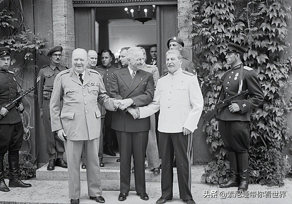 ▲1945年7月23日,丘吉尔、杜鲁门和斯大林在波茨坦。