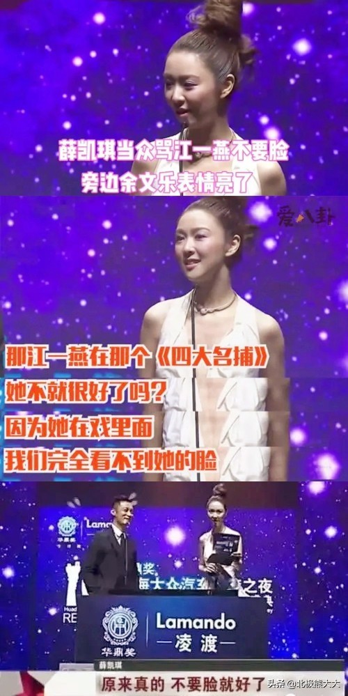 2014年,薛凯琪在华鼎颁奖典礼上,公然讽刺江一燕不要脸。