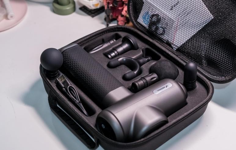 经过筋膜枪测评,从功能模式的角度来看,它配备了球型头、扁平头、子弹头、U型头和圆柱头这5个按摩头,种类较为多样,配件也比较丰富。