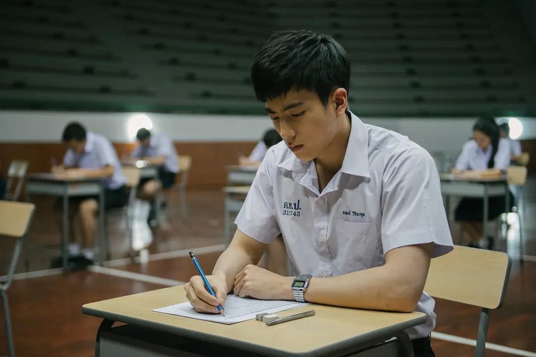 使影片又归入追求梦想、存在单纯友谊的怀旧青春片系列中。《天才枪手》的导演却将青春期中都经历过的静态考试,转化为一种惊心动魄的动态事件。3场考试,作弊难度层层升级。