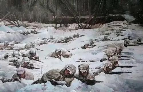 而在阻击美军撤退的路上,志愿军战士坚守在阵地上,夜晚,气温骤降,志愿军战士俯卧在零下40多摄氏度的阵地上,手握钢枪、手榴弹,被冻成了“冰雕”。