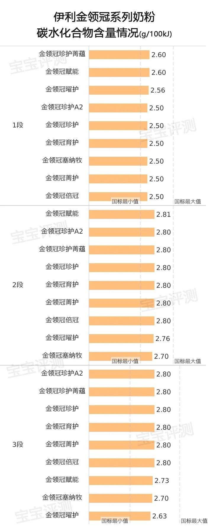 1、伊利金领冠各系列奶粉全段的碳水化合物含量均符合新国标要求。