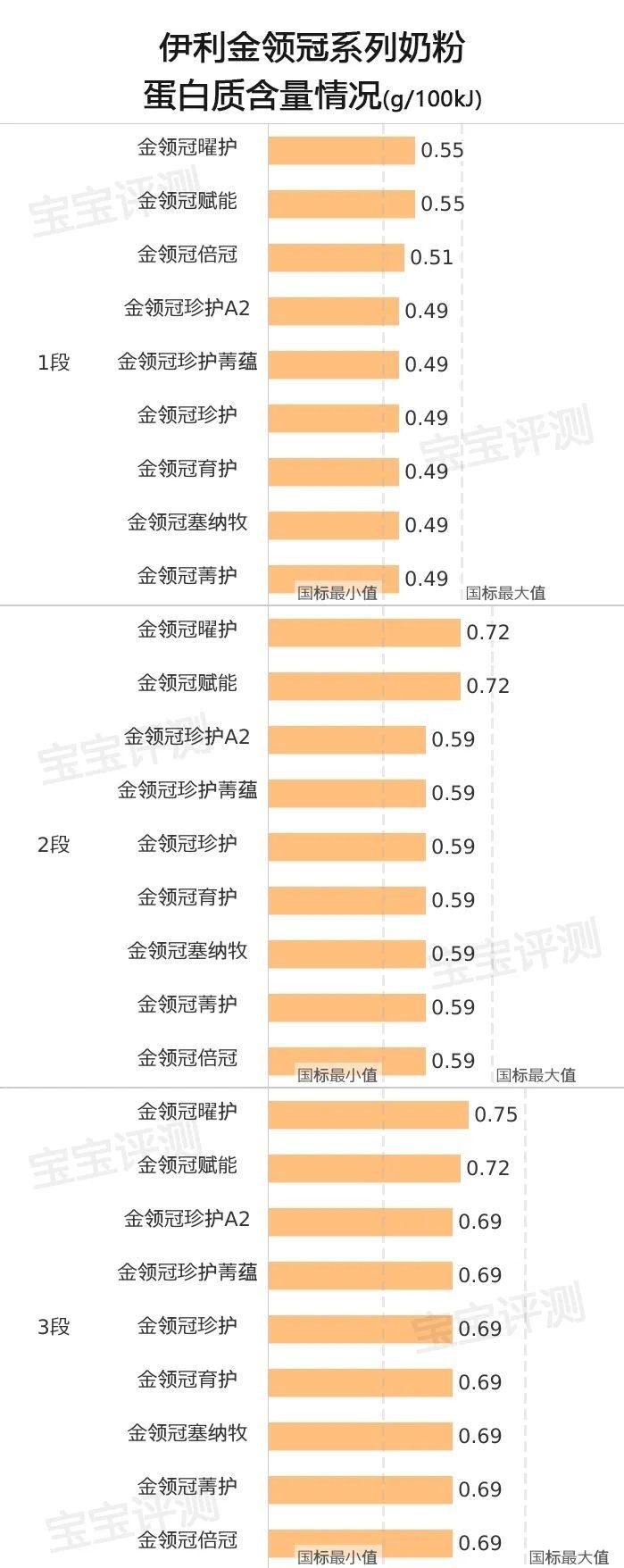 1、伊利金领冠各系列奶粉全段的蛋白质含量均符合新国标要求。