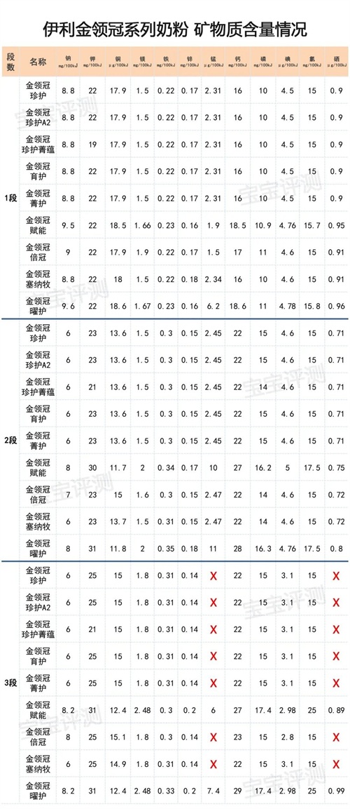 2、只有金领冠赋能、曜护,各段维生素和矿物质的种类添加齐全。其他系列3段均缺乏锰和硒(属于3段奶粉的“可选择性成分”)。