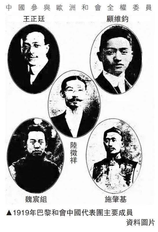 陆征祥奉北洋政府徐世昌总统之命,率领驻美公使顾维钧、南方政府外交部长王正廷、驻英公使施肇基、驻比利时公使魏宸组五人代表团,出席巴黎和会。