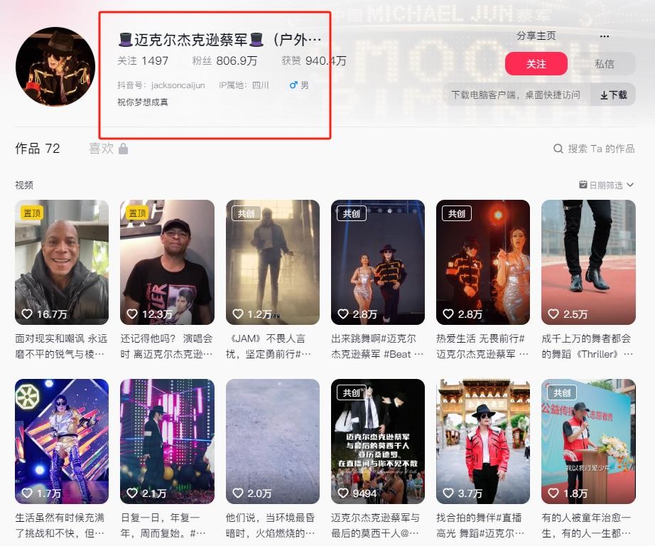 [5] 迈克尔杰克逊蔡军 抖音账号