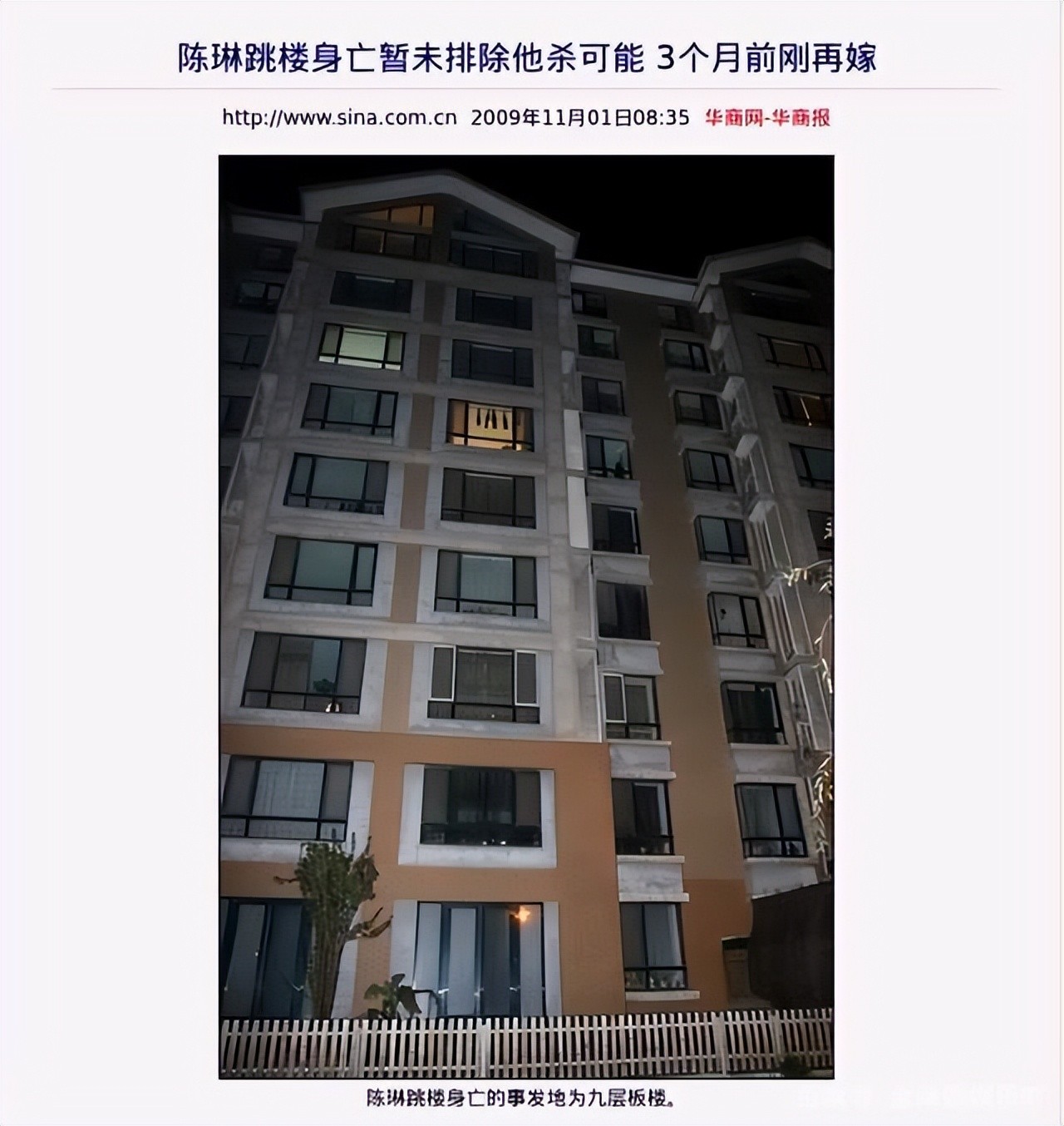 2009年10月31日,一名大约40岁的女性在北京奥林匹克花园公寓9楼跳楼自杀,这个新闻轰动全国。