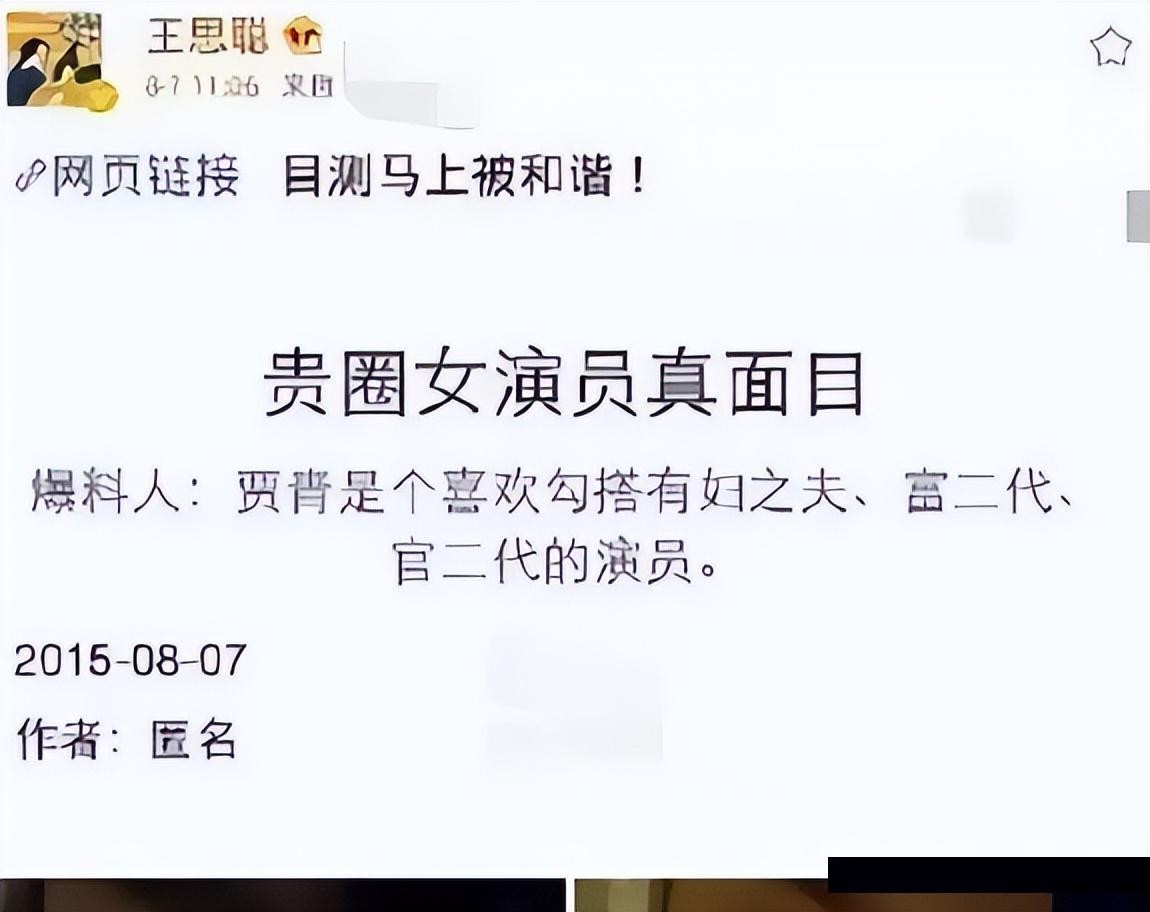 可两人在一起的目的显然都不太单纯,注定了没有结婚的可能,再加上王思聪的一条微博“火上浇油”,暗指贾青私生活,似乎有点混乱。