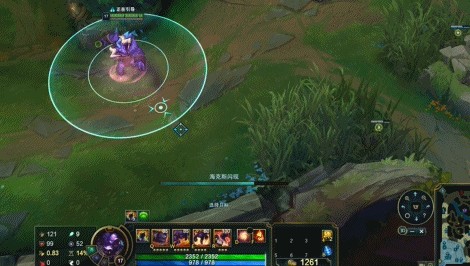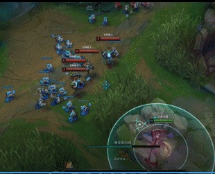机器人最常见的钩人方式是通过W技能的加速效果,逼迫压缩敌人走位,待时机成熟施放Q技能拉人。这种方法目前是下路机器人在对线期最常用的拉人方式,但是这种方法的缺点同样在于进攻目的太明显,隐蔽性不够强,成功率不够高。然而,配备了海克斯闪现的机器人,就足够可以做到隐蔽性够强,命中率够高。下面我通过下图实例来分析一下机器人在对线期海克斯闪现的妙用。